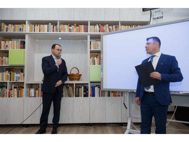 Modernizarea bibliotecii școlare a însemnat reabilitarea sălii, dotarea cu tablă interactivă, proiector și calculator performant, mobilier ultramodern.