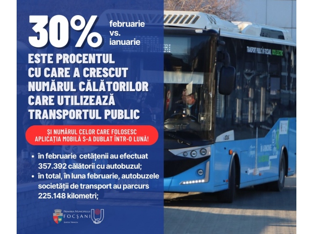 În total, în luna februarie au fost înregistrate la Transport Public Focșani un număr de 357.392 de călătorii.