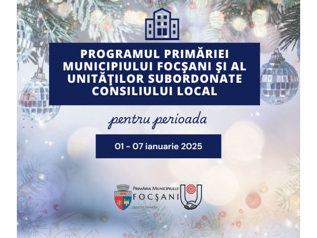 PROGRAMUL PRIMĂRIEI MUNICIPIULUI FOCȘANI ȘI AL UNITĂȚILOR SUBORDONATE CONSILIULUI LOCAL PENTRU PERIOADA 1 - 7 IANUARIE 2025