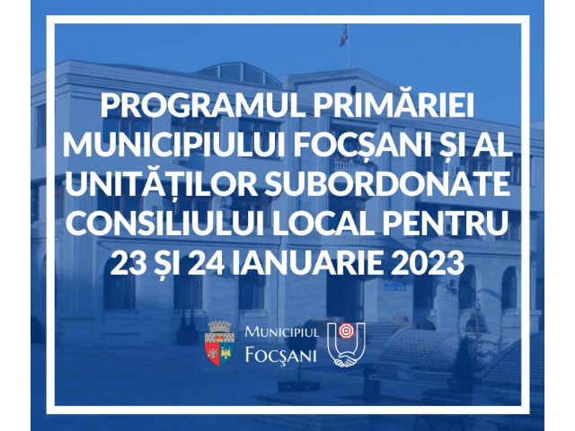 În zilele de luni, 23 ianuarie și marți, 24 ianuarie 2023 nu se lucrează.