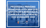 Programul mijloacelor de circulație, ce efectuează transport public local de călători în Municipiul Focșani, Comuna Golești, Comuna Câmpineanca, Comuna Vârteșcoiu - sat Olteni, Comuna Milcovul, Comuna Gologanu, Comuna Răstoaca și Comuna Vânători, pentru perioada 23 - 24 ianuarie 2023: