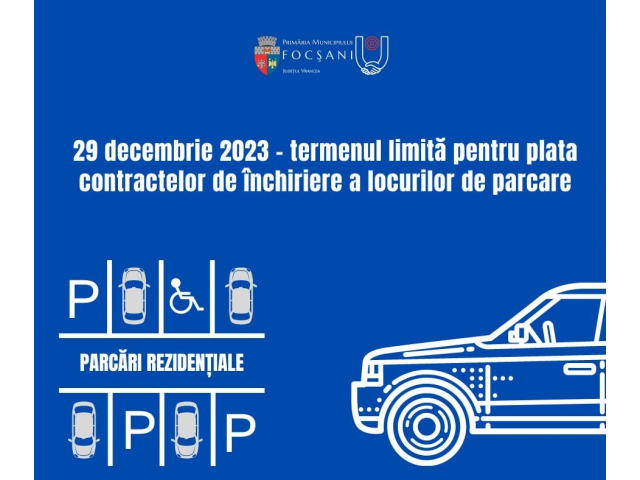 Termenul limită până la care se poate face plata pentru locul de parcare închiriat este 29 decembrie 2023.