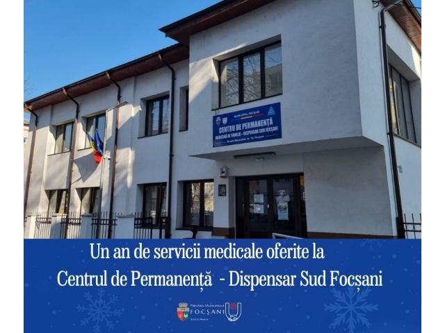 Primăria Municipiului Focșani mulțumește pe această cale tuturor instituțiilor implicate în continuitatea acestui proiect pentru cetățenii municipiului Focșani: Casa Județeană de Asigurări de Sănătate Vrancea, Direcția de Sănătate Publică Vrancea și, mai ales, echipei medicale (medici și asistenți) care asigură permanența în cadrul Centrului de permanență Medicină de familie - Dispensar Sud Focșani.