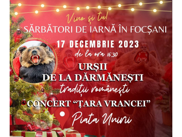 Astfel, de la ora 16.30, va avea loc Parada Urșilor de la Dărmănești în Piața Unirii din Focșani