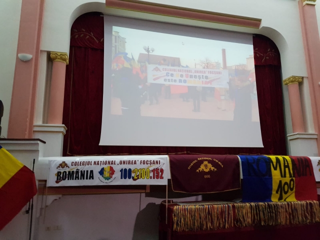 Evenimentul de ieri a fost ultima activitate organizată din cadrul proiectului România 100.2100.152. Este un proiect cu care Colegiul Național Unirea se mândrește, este un proiect care s-a desfășurat pe o perioadă de doi ani de zile.
