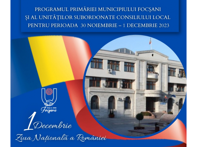 În perioada 30 noiembrie -1 decembrie 2023: se asigură serviciul de continuitate prin personalul de tură.