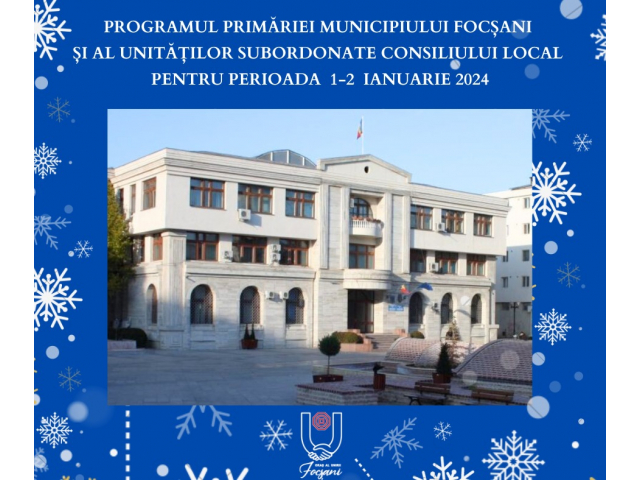 - În perioada 1-2 ianuarie 2024: se asigură serviciul de continuitate prin personalul de tură.