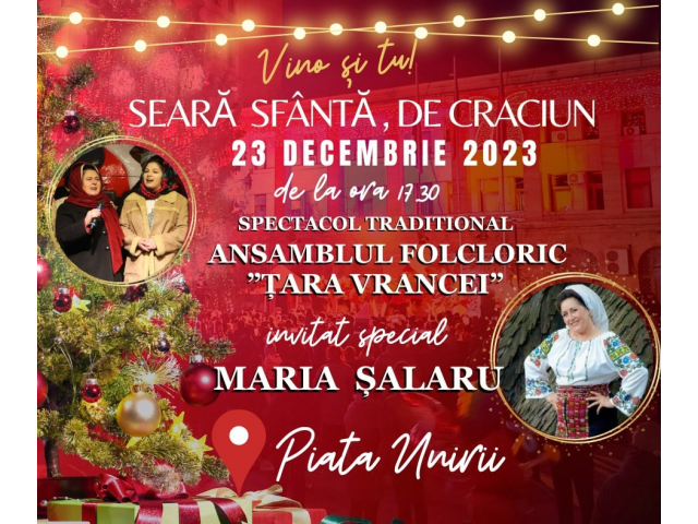 Sărbătorile de Iarnă continuă sâmbătă după amiază, 23 decembrie, la Focșani, cu un spectacol tradițional