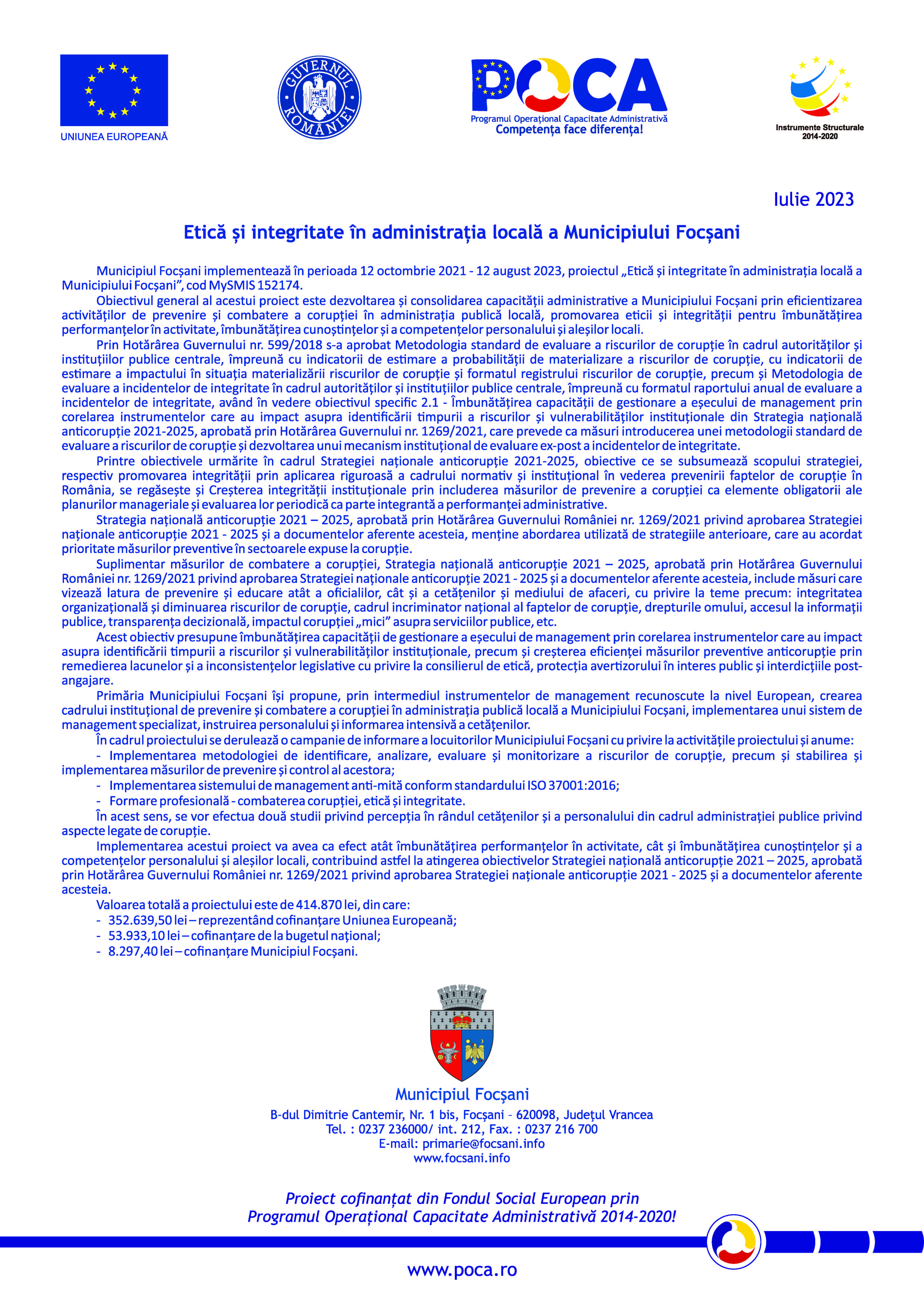 Etică și integritate în administrația locală a Municipiului Focșani - 2