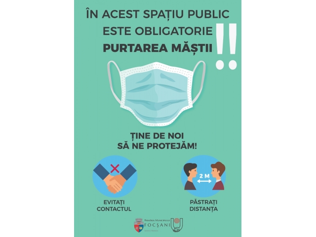 De asemenea, Primăria Municipiului Focșani va demara încă o campanie de informare a cetățenilor cu privirie la principalele măsuri de protecție, în vederea limitării pandemiei de COVID-19 prin afișarea acestora în piețe, locuri publice și mijloace de transport în comun.