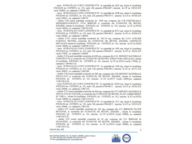 • în anul 2006 S.C. PORTAL LEASING IFN cumpară de la SCCM SA un teren situat în Municipiul Focșani, str. Cotești nr. 101 în suprafață de 7,47 ha. După această dată S.C. PORTAL LEASING IFN vinde unor societăți comerciale suparafața de 1,37 ha și mai ramane în proprietate cu 6,1 ha;