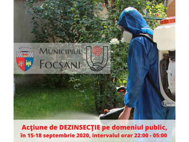 Primăria Municipiului Focșani, prin Direcția de Dezvoltare Servicii Publice Focșani, anunţă că pe raza Municipiului Focșani va demara o acţiune de DEZINSECȚIE!