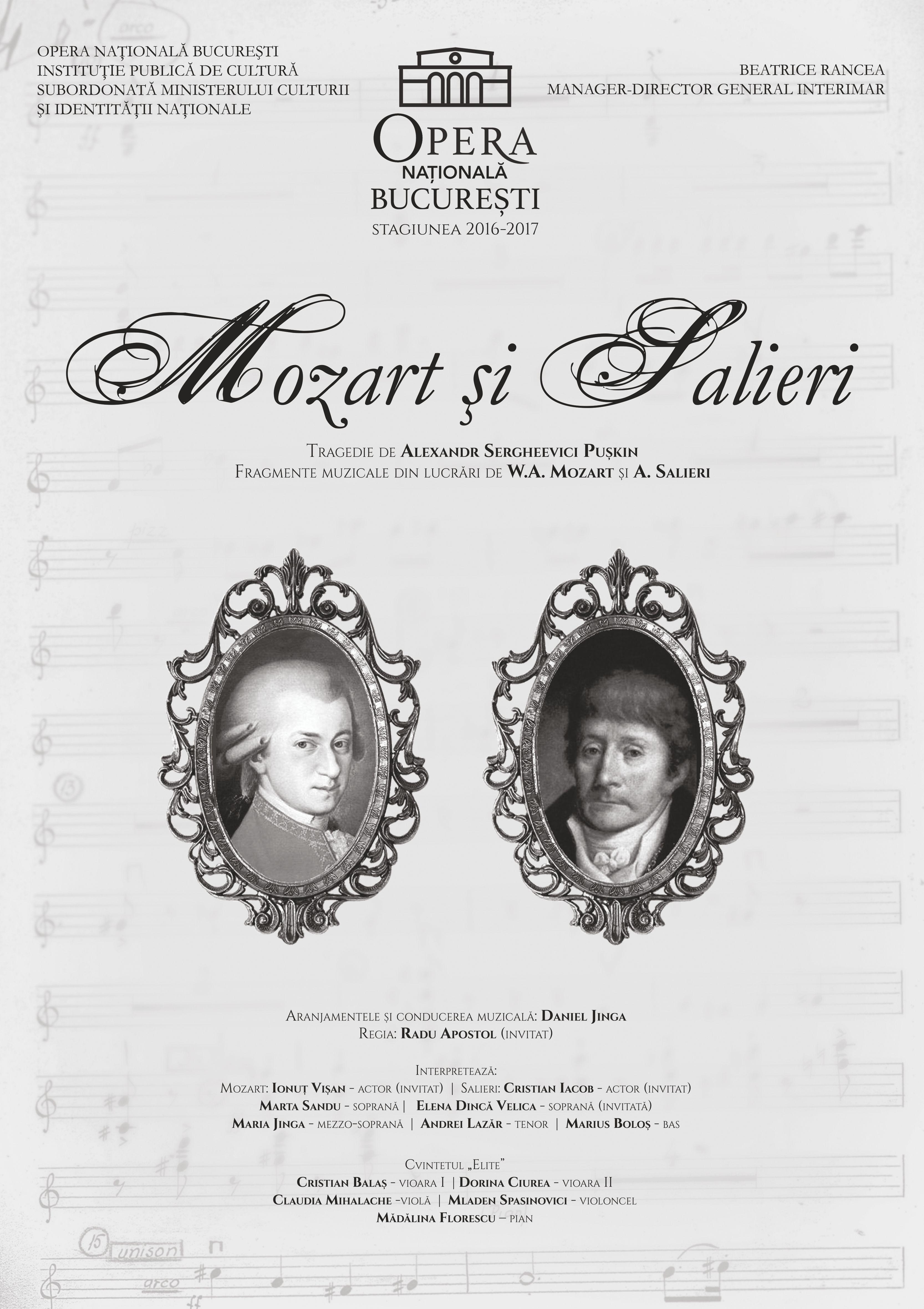 Spectacol eveniment "Mozart și Salieri” la Ateneul Popular ”Mr.Gh.Pastia”, 30 martie 2017