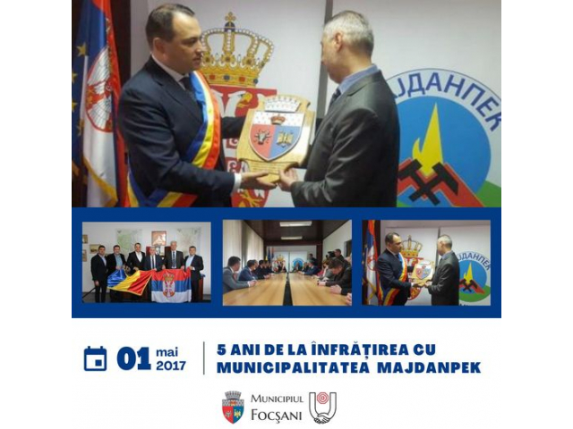 1 Mai este o zi importantă pentru Municipiul Focșani și din perspectiva cooperării internaționale, ca urmare a faptului că în urmă cu 5 ani a fost semnat "Acordul de Înfrăţire" cu municipalitatea Majdanpek, Republica Serbia.