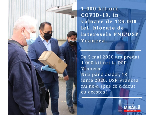 Mai mult decat atât, într-un total dispreț față de cetățenii Municipiului Focșani, ați cerut bani în plus pentru utilizarea acestor teste, deși Ordinul Ministerului Sănătății nr 479/22.03.2020 prevedea că toate costurile sunt suportate de Minister și decontate de către Direcțiile de Sănătate Publică. Ați făcut toatea acestea numai ca să nu folosiți testele cumpărate de Primăria Municipiului Focșani, fără a ține cont că astfel puneți în pericol sănătatea celor care luptă în linia întâi împotriva noului Coronavirus și iată, prin lipsa de profesionalism și zeflemeaua care vă caracterizează, ați adus Vrancea în topul județelor în care a crescut numărul persoanelor infectate. Poate că dacă DSP Vrancea ar fi utilizat cele 1000 de kit-uri, alta ar fi fost situația acum!