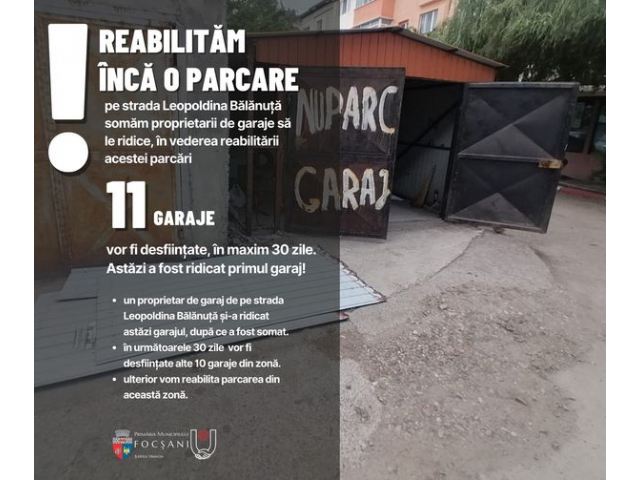 Procedura de identificare și somare a proprietarilor este deja în derulare și estimăm ca în 30 de zile toate garajele să fie ridicate.