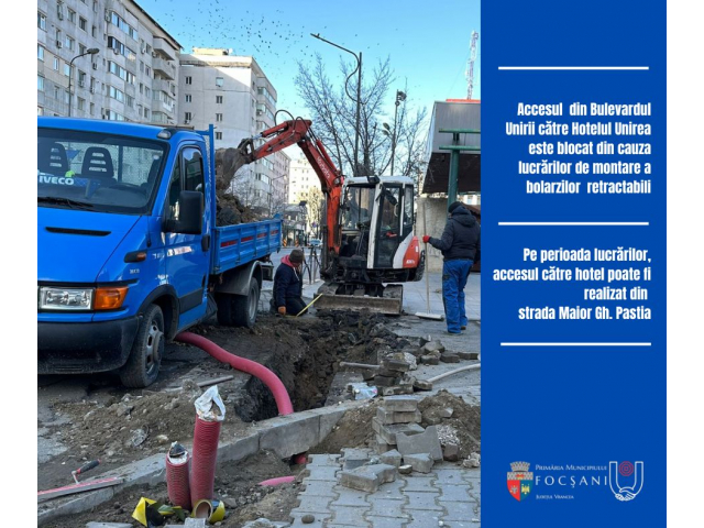 În această perioadă, accesul către Hotelul Unirea va fi asigurat dinspre strada Maior Gheorghe Pastia