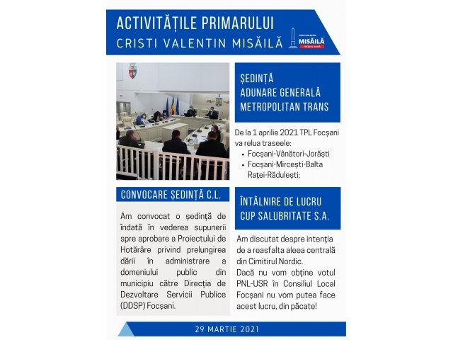 Convocare ședință de îndată în vederea dezbaterii Proiectului de Hotărâre privind prelungirea dării în administrare a domeniului public din municipiu către Direcția de Dezvoltare Servicii Publice (DDSP) Focșani.