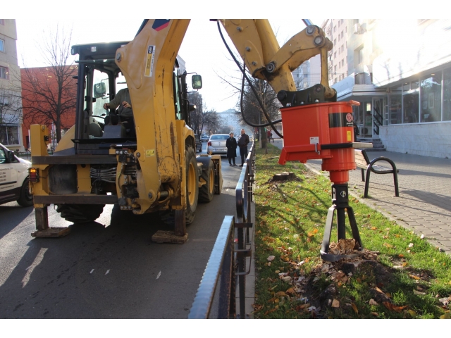 Burghiul de distrus cioate și rădăcini, intrat de curând în dotarea Direcției de Dezvoltare Servicii Publice, găureşte în trunchiul arborelui și distruge în doar câteva minute rădăcinile ramificate în sol.