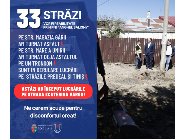 Aceasta este una din cele 33 de străzi din Municipiul Focșani care vor fi reabilitate și modernizate prin acest program de investiții.