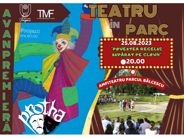 Spectacolul "Povestea regelui supărat pe clovn", de Matei Vișniec, va fi prezentat în avanpremieră de trupa Protha în această seară, de la ora 20.00, în Amfiteatrul Parcului Nicolae Bălcescu