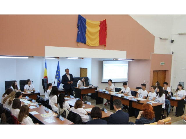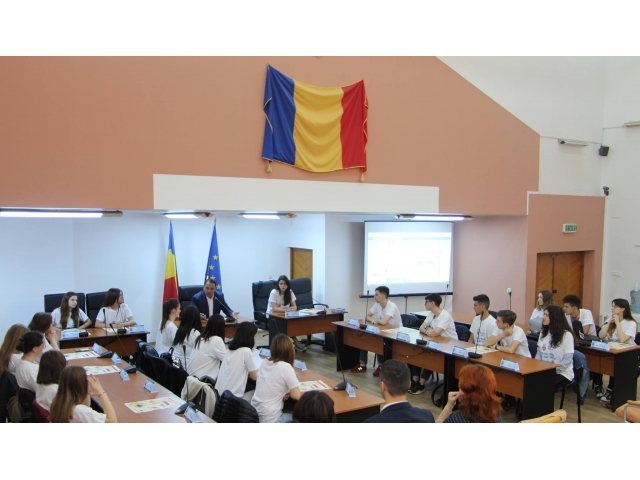 Timp de aproape două ore, liceenii au avut un dialog antrenant cu Primarul Municipiului Focșani, care le-a explicat principiile de organizare și funcționare a administrației publice locale, prezentându-le totodată organigrama și toate serviciile din cadrul instituției.