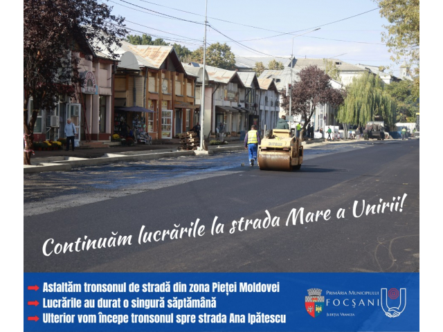 Sperăm ca vremea să fie frumoasă iar până la sfârșitul acestei luni să putem turna asfalt și pe aceste tronsoane ale străzii Mare a Unirii