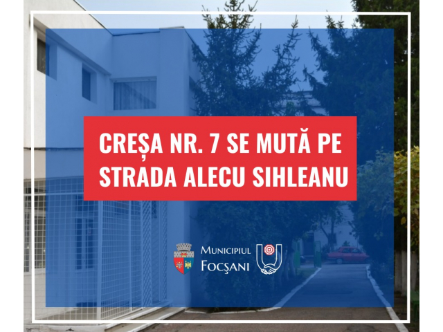 Astfel, începând cu data de 26 ianuarie 2023, Creșa Nr. 7 Focșani își va relua activitatea în locația situată pe Strada Alecu Sihleanu Nr. 6, la etajul 2.