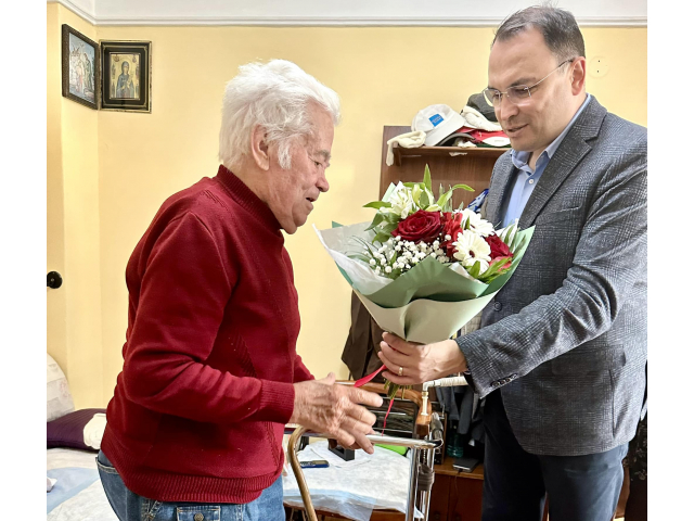 Luni, 1 aprilie, Primarul Cristi Valentin Misăilă l-a felicitat pe domnul Dumitru Trandafir cu ocazia împlinirii frumoasei vârste de 91 de ani. Seniorul focșănean a primit din partea municipalității o diplomă de longevitate, un buchet de flori și un premiu în valoare de 500 de lei.