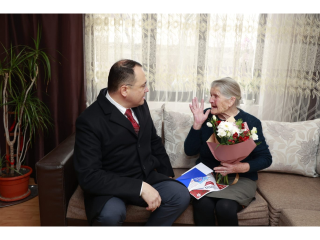 Vineri, 1 Martie, Primarul Cristi Valentin Misăilă a felicitat-o pe doamna Gherghina Iacob cu ocazia împlinirii venerabilei vârste de 99 de ani