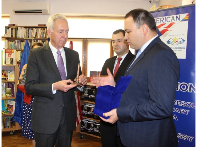 La manifestările prilejuite de aniversarea a 106 ani de la înființarea Bibliotecii Județene "Duiliu Zamfirescu" Vrancea, am fost onorat să fiu prezent alături de Excelența Sa Ambasadorul S.U.A., domnul Hans Klemm, precum și de reprezentanți ai Consiliului Județean Vrancea, ai bibliotecilor din țară, ai mass mediei, pentru a inaugura "Raftul American", donație reprezentând peste 200 volume în limba engleză.