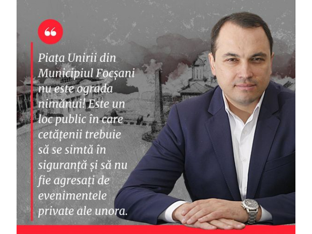 Piața Unirii din Municipiul Focșani nu este ograda nimănui, ci este un loc public în care cetățenii trebuie să se simtă în siguranță și să nu fie agresați de evenimentele private ale unora!