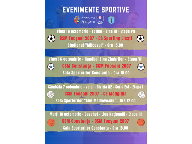 Meciuri de fotbal, handbal, volei și baschet pentru iubitorii sportului focșănean