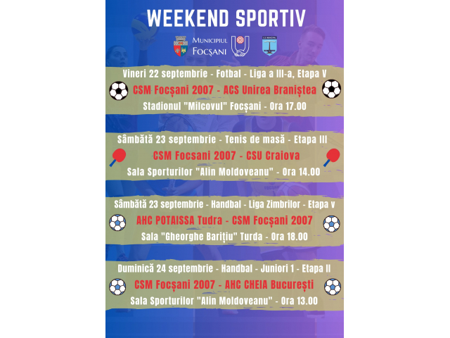 Sâmbătă, echipa de tenis de masa va juca în etapa a treia a Superligii Naționale împotriva echipei CSU Craiova. Duelul va avea loc în Sala Sporturilor "Alin Moldoveanu" din Focșani și va începe la ora 14.00!