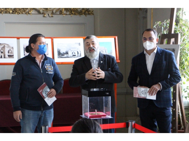Expoziția a fost realizată cu sprijinul colecționarului Petru Mincu care ne-a pus la dispoziție fotografii de colecție dar și o medalie aniversară bătută la 1909, cu ocazia debutului lucrărilor la clădirea viitorului teatru. De altfel, această medalie este și cea mai valoroasă piesă din expoziție.