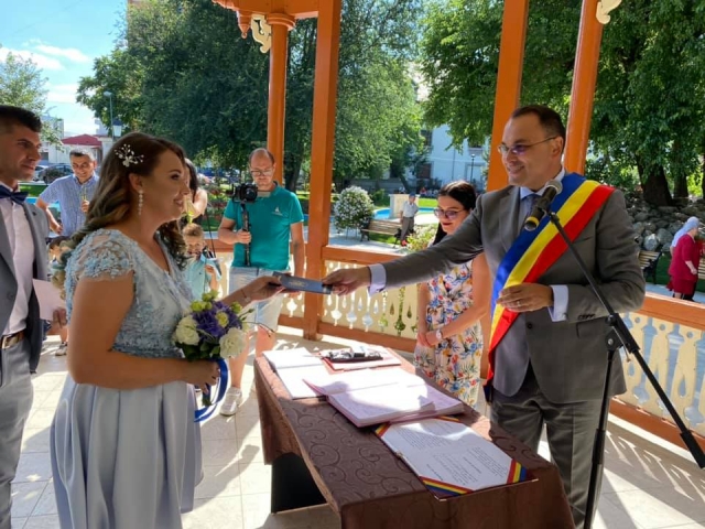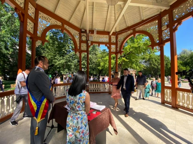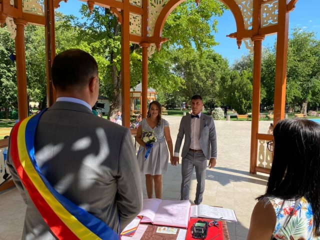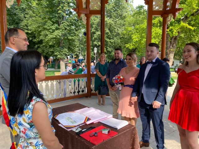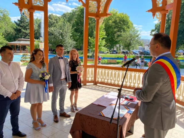Un nou week-end în care oficiem căsătorii în aer liber. Foișorul din Grădina Publică din Focșani a fost din nou gazdă pentru două cupluri de tineri fericiți. Le urăm din suflet tinerilor căsătoriți casă de piatră, sănătate și multă înțelegere.