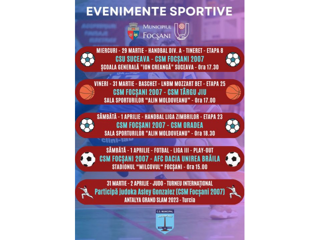 Miercuri, tinerii handbaliști focșăneni, aflați pe primul loc în play-off-ul Diviziei A tineret, vor juca pe terenul formației de pe locul doi în clasament, CSU Suceava, într-un meci contând pentru etapa a 8-a.