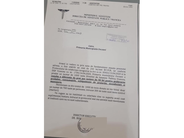 DSP Vrancea, instituție căzută pe mâna PNL, își bate joc de medicii și de funcționarii publici din Focșani prin blocarea demarării procedurii de testare a acestora! Deși în data de 5 mai 2020 Primăria Municipiului Focșani a predat un număr de 1.000 kituri pentru testarea, cu precădere, a cadrelor medicale, polițiștilor, jandarmilor, angajatilor ISU, Ambulanța, Poliția locală și funcționarii publici aflați în legătură directă cu cetățenii, luni, 11 mai 2020, Direcția de Sănătate Publică (PNL Vrancea) solicită sume suplimentare de bani pentru a folosi cele 1.000 de kituri, pentru care Primăria Municipiului Focșani a cheltuit deja 84.000 lei.