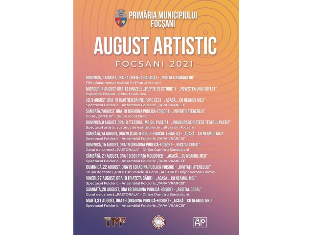 Primăria Municipiului Focșani organizează în zilele libere din cursul lunii august o serie de evenimente în aer liber, prilej pentru toți focșănenii să se bucure de frumos.