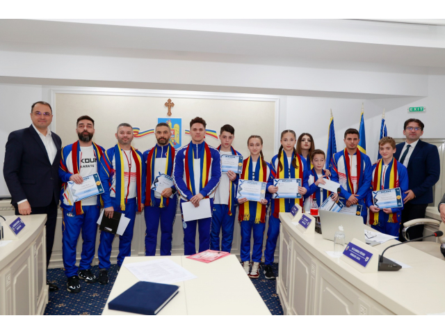 Primarul Cristi Valentin Misăilă și președintele de ședință al Consiliului Local, consilierul Liviu Macovei, i-au premiat, miercuri, 29 noiembrie, pe sportivii din Focșani care au obținut performanțe deosebite la Campionatul Mondial și Cupa Mondială de karate SKDUN desfășurate în Grecia și la Campionatul European de Kickboxing organizat în Turcia în acest an