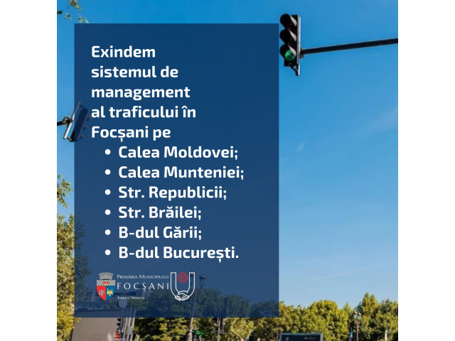 Proiectele sunt complementare investiției aflate în derulare, respectiv „Implementarea unui sistem de management al traficului și monitorizare în Municipiul Focșani", finanțat prin POR 2014-2020 care prevede semaforizare și monitorizare video a 30 de intersecții și treceri de pietoni din Municipiul Focșani, pe arterele B-dul Unirii, B-dul Independenței, străzile Mărășești, Cuza Vodă și Bucegi.