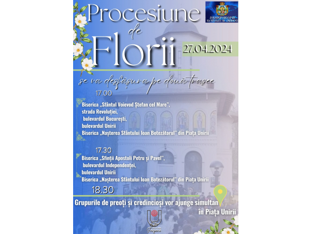 Vă așteptăm sâmbătă, 27 aprilie 2024, la Procesiunea de Florii de la Focșani, o adevărată tradiție creștin-ortodoxă locală.