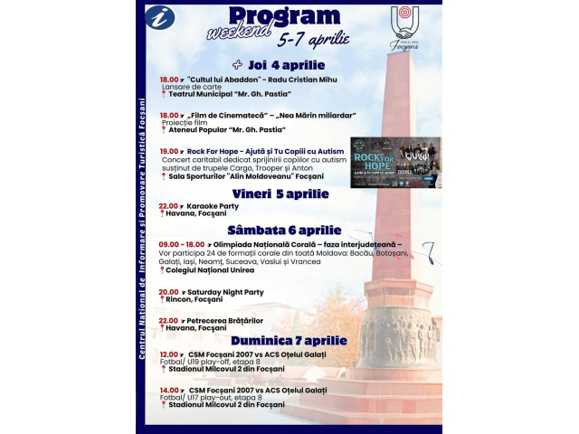 09.00 - 18.00 - Olimpiada Națională Corală - faza interjudețeană - Focșani -Vrancea