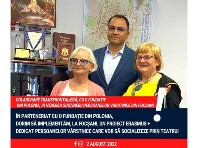 Astfel, Primarul Municipiului Focșani, Cristi Valentin Misăilă, a primit vizita doamnelor profesor Danuta Sadownik și Barbara Janic, reprezentanții fundației "Aktywni XXI" din Orașul Radków, Polonia care doresc să implementeze un proiect Erasmus+ dedicat special persoanelor vârstnice.