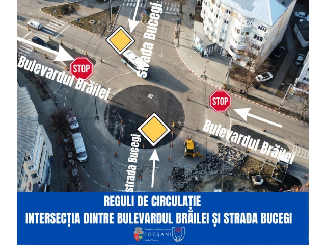Această intersecție va fi semaforizată în cel mai scurt timp, după finalizarea lucrărilor de resistematizare, iar accesul autovehiculelor va fi gestionat prin noul sistem de management al traficului care va fi implementat în Municipiul Focșani!