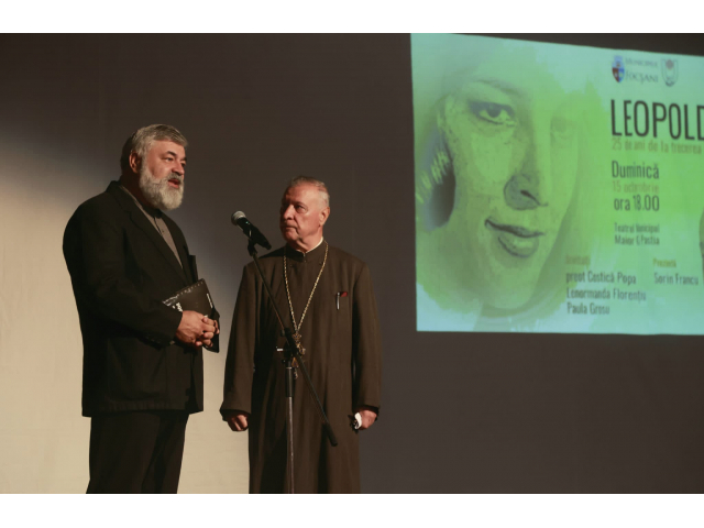 Actorii teatrului focșănean, Paula Grosu și Sorin Francu alături de preotul Costică Popa au povestit întâmplări din viața Leopoldinei Bălănuță și a preotului Neculaie Bălănuţă, cel care a salvat de la demolare Biserica „Sfinții Împărați Constantin și Elena"- Capela Militară din Municipiul Focșani