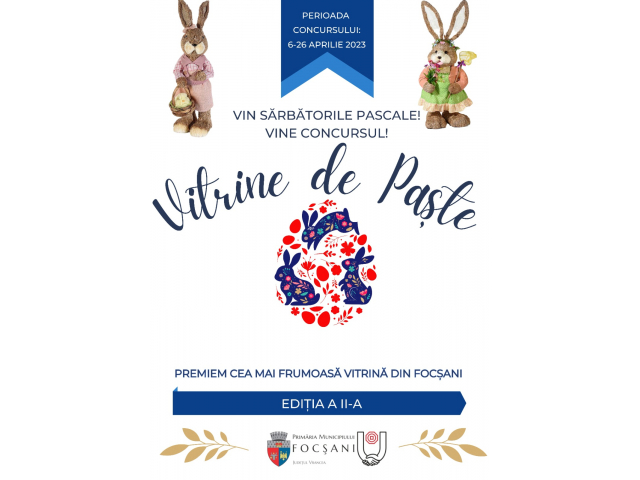 Primăria Municipiului Focșani demarează cea de-a II-a ediție a concursului public "Vitrine de Paște", prin care lansăm provocarea agenților economici să își pavoazeze vitrinele și spațiile din incintă.