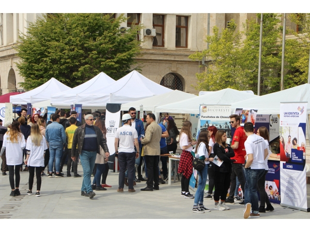 30 de organizații studențeşti din țară și-au prezentat ofertele în standurile special amenajate în Piața Unirii, pentru a-i ajuta pe viitorii noștri studenți să-și aleagă în mod conștient traseul profesional.