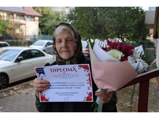8 "bunici" care au împlinit sau depășit vârsta de 90 de ani s-au ales astăzi cu o diplomă de longevitate, un buchetul de flori și un premiu în valoare de 500 de lei.