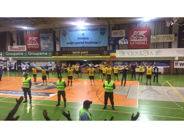 Astăzi a venit rândul vicecampioanei din sezonul trecut în Liga Zimbrilor la handbal masculin să plece învinsă din Sala Polivalentă din Focșani, după o victorie splendidă a băieților. Parcursul aproape fără greșeală se observă și în clasamentul primei ligi, echipa noastră aflându-se, dupa primele cinci etape, pe locul întâi, lăsând în urmă nume sonore precum Steaua, Dinamo, Dobrogea Constanța sau CSM București.
